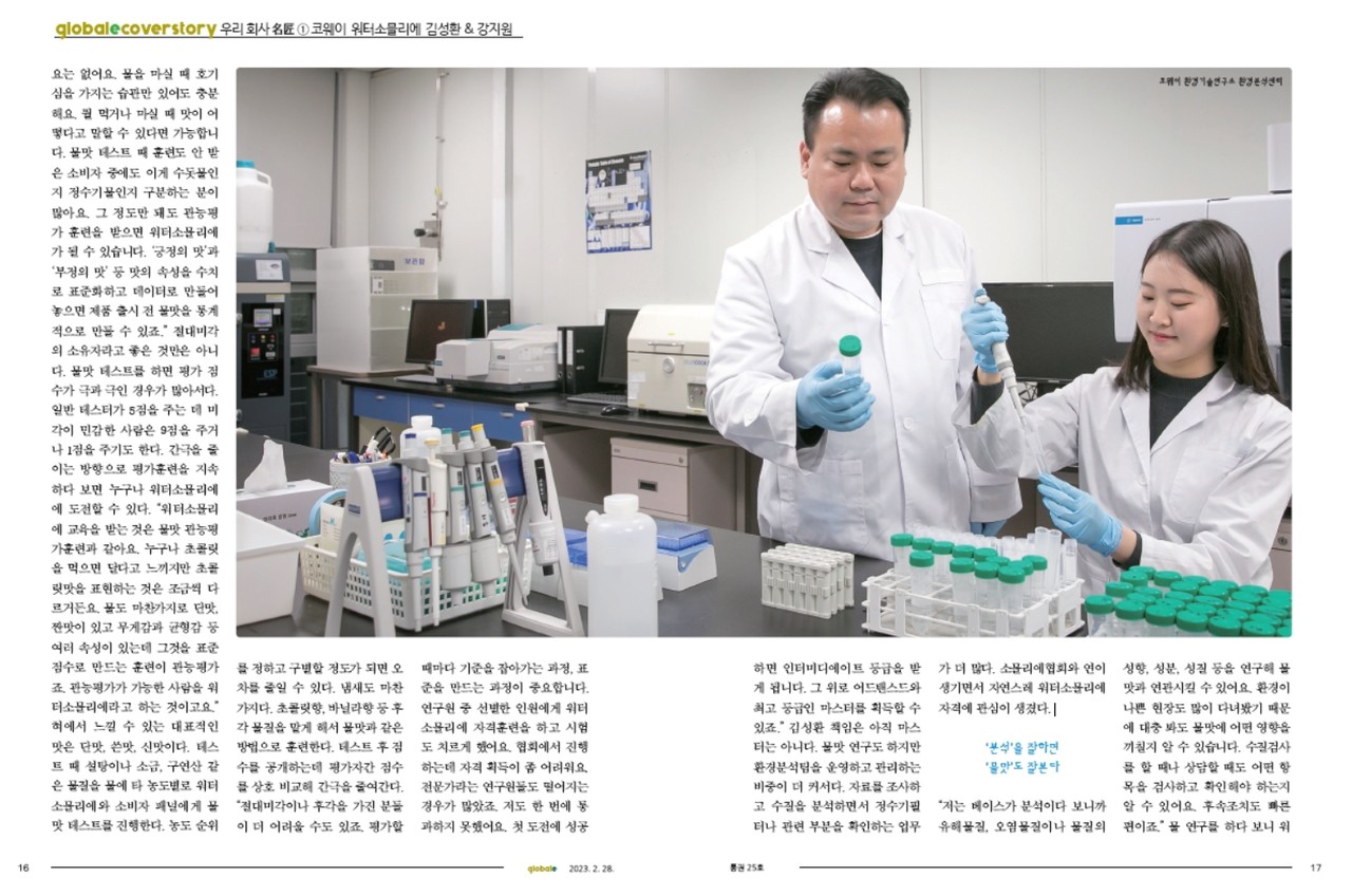김성환 책임은 아직 마스터는 아니다. 물맛 연구도 하지만 환경분석팀을 운영하고 관리하는 비중이 더 커서다. 자료를 조사하고 수질을 분석하면서 정수기필터나 관련 부분을 확인하는 업무가 더 많다. 소믈리에협회와 연이 생기면서 자연스레 워터소믈리에 자격에 관심이 생겼다. 《계속》