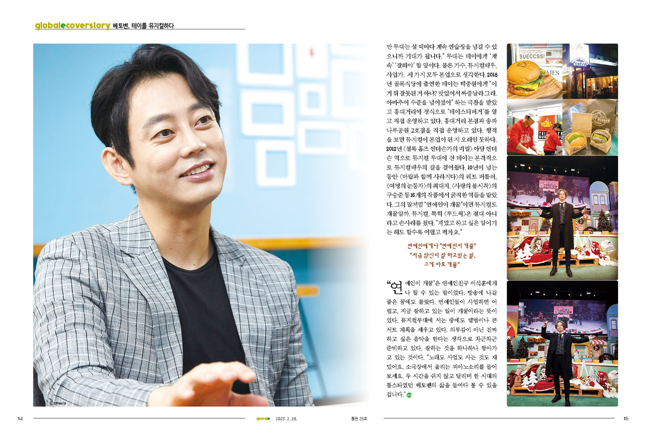 "베토벤이 위대한 음악가라면 나는 소박한 음악가죠." 그에게 뮤지컬은 연습장이다. 음악은 언제나 하고 있었던 일이지만 제대로 된 연습장에 기록을 남기는 과정, 빽빽하게 채워가는 과정이 지금이다. 잘하려는 욕심보다는 지치지 않고 열심히 해나가려 한다. "영상매체는 한번 찍어놓으면 끝이지만 무대는 설 때마다 계속 연습장을 넘길 수 있으니까 기대가 됩니다."