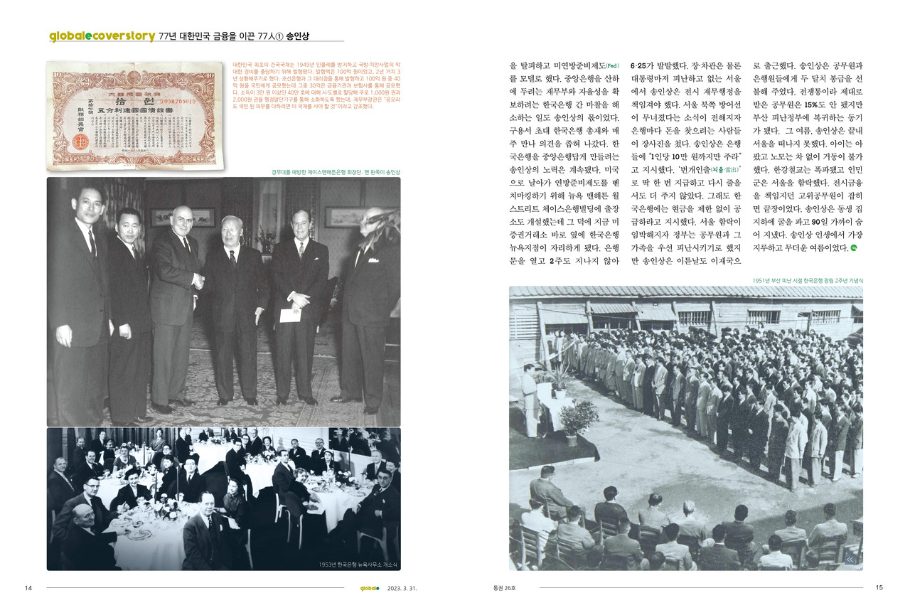 일제강점기 민족은행은 말살됐고 해방 후 우리 금융은 껍데기만 남았다. 그마저도 전쟁으로 파산 상태가 되고 말았다. 그 후 77년. 대한민국 금융은 상전벽해(桑田碧海)의 기적을 이루었다. 은행들은 연간 수조 원대 순익을 거두고, 여의도 증권가는 '아시아의 월스트리트' 반열에 올랐으며, 리딩 보험사 한 곳의 자산 규모가 대한민국 한 해 예산을 뛰어넘은 지 오래다. 뽕밭이 거저 바다가 된 건 아니다. 원조경제시대 굴욕을 감내했고 개발시대엔 "한국 은행은 정부의 현금인출기"란 조롱까지 받아야 했으며 외환위기 땐 퇴출과 구조조정으로 생존마저 위협받았다. 그렇게 살아남은 대한민국 금융은 더 커지고 강해졌다. 그들이 있었기에 가능했다. 불모지를 개척하고, 혁신을 거듭하고, 위기를 기회로 만든 전설의 금융인들! 우리 금융은 아직 얕고 작은 바다다. '고객가치'와 '글로벌'과 '지속가능'의 더 크고 깊은 바다로 나아가려면 그들을 기억하고 배워야 한다. 〈글로벌e〉가 77년 대한민국 금융사(史)에 빛나는 77명의 금융영웅을 탐구하는 이유다.