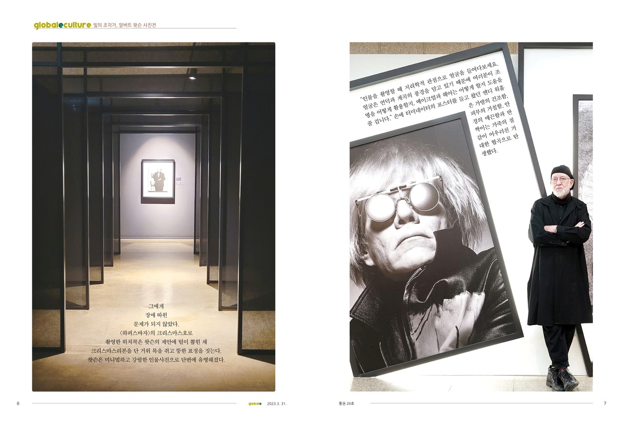 알버트 왓슨(Albert Watson)은 82세에도 매일 열정적으로 일한다. 한국까지 날아와 전시의 디자인 및 설계부터 참여한 그는 하루 10시간 이상을 전시장에 있었다. 평생 한 눈으로 세상을 봐야 했던 '외눈박이 아티스트'는 보이지 않는 눈 대신 카메라렌즈를 통해 세상을 완성했다.