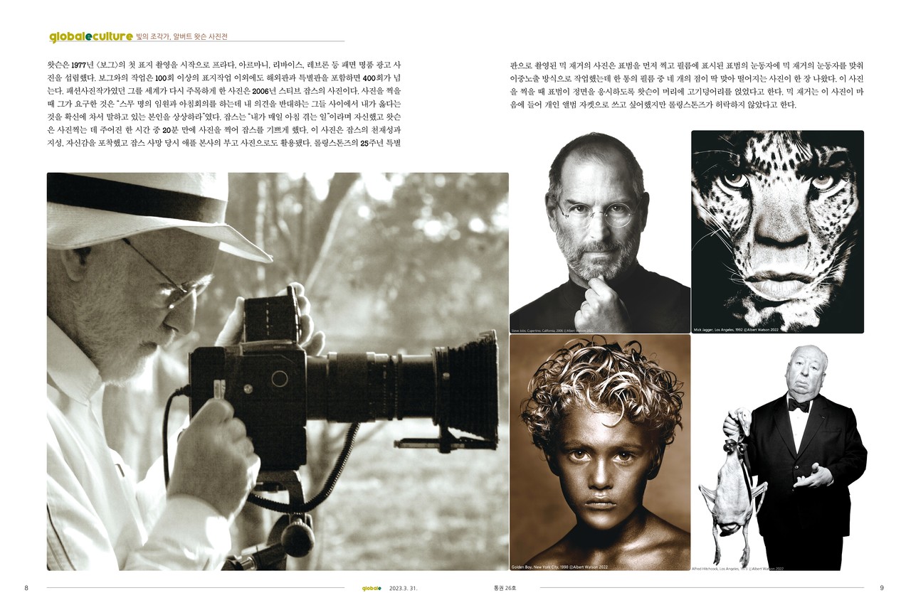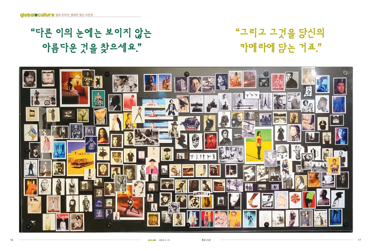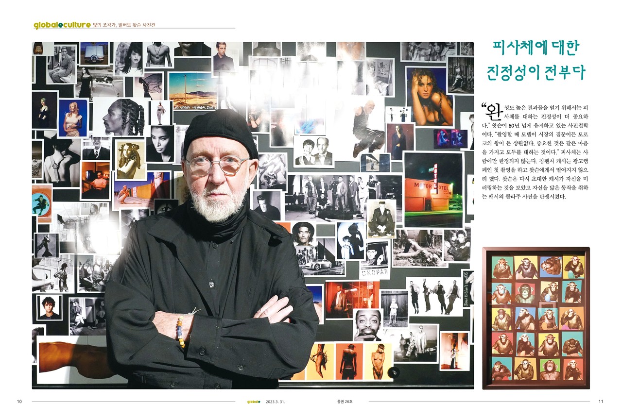 알버트 왓슨(Albert Watson)은 82세에도 매일 열정적으로 일한다. 한국까지 날아와 전시의 디자인 및 설계부터 참여한 그는 하루 10시간 이상을 전시장에 있었다. 평생 한 눈으로 세상을 봐야 했던 '외눈박이 아티스트'는 보이지 않는 눈 대신 카메라렌즈를 통해 세상을 완성했다.