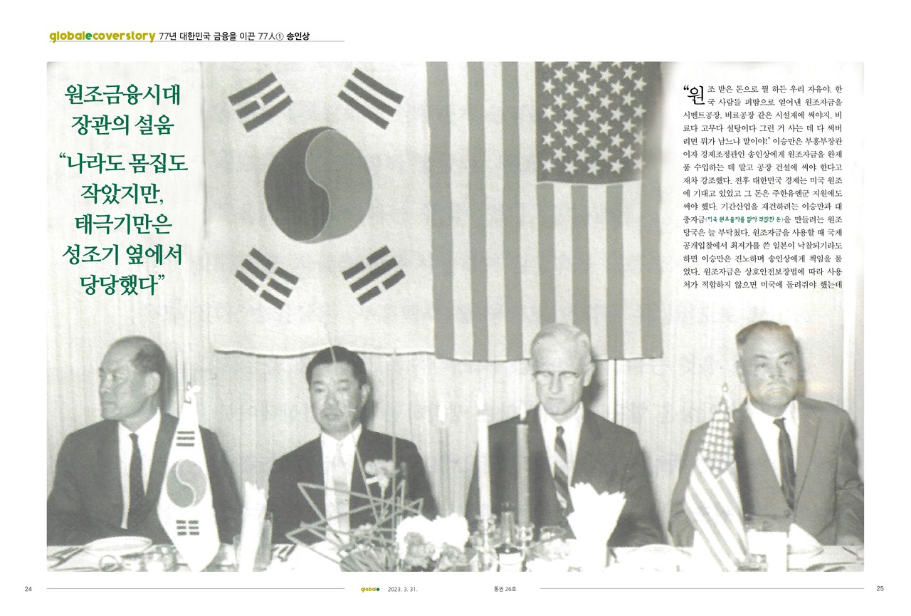 송인상은 원조 당국과 살벌하게 대립하며 어떻게든 실익을 내려고 애를 썼다. 미국에 한 푼이라도 더 달라고 해야 하는 협상테이블에서 체면을 유지하는 건 불가능했다. 협상이 난관에 부닥칠 때마다 송인상은 물러서지 않고 탁자 위 태극기에 시선을 집중하며 힘을 냈다.