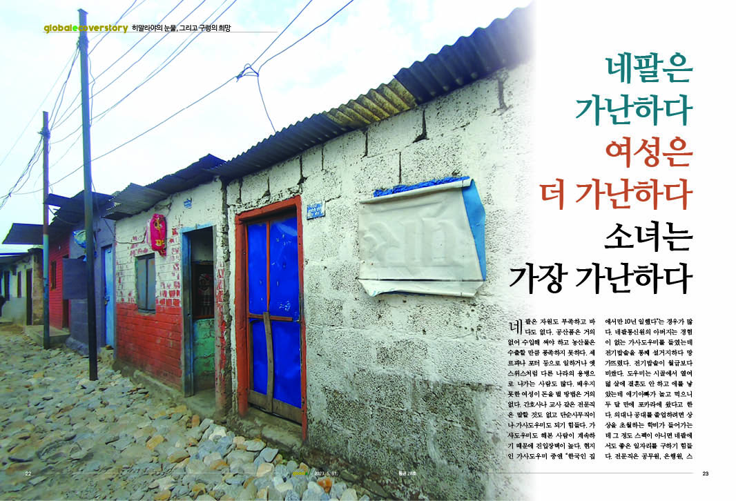 10년 전만 해도 아이를 예닐곱 낳는 집이 많았다. 원조가 들어오며 유아사망률이 낮아져 요즘은 많이 낳지 않는다. 네팔의 수출품목 1위가 사람이다 보니 없는 형편에도 남자아이 특히, 장남에게 투자를 집중한다. 도시에선 학비를 감당하기 힘들어 둘 이상은 낳지 않는다. 〈계속〉