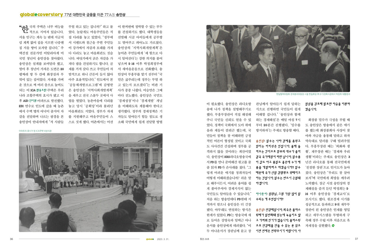 어촌에서는 어선이 한꺼번에 정박할 수 있는 부두를 건설하기도 했다. 대학생들을 선발해 시골 아이들에게 공부방도 열어주고 피아노도 가르쳤다. 송인상의 '지역사회개발계획'은 농어촌 주민들에게 '제 힘으로 다시 일어선다'는 강한 의지를 불어넣으며 5·16 이후 박정희정부에서 새마을운동으로 진화했다.