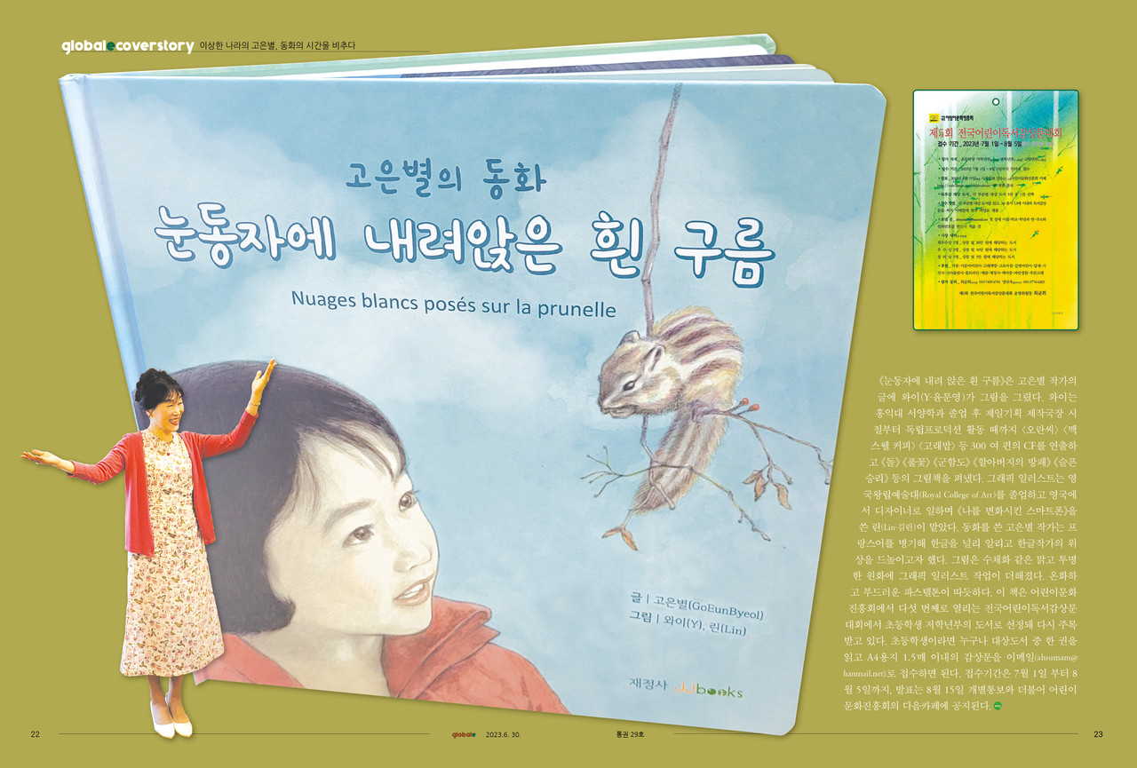 《눈동자에 내려 앉은 흰 구름》은 고은별 작가의 글에 와이(Y·윤문영)가 그림을 그렸다. 와이는 홍익대 서양학과 졸업 후 제일기획 제작국장 시절부터 독립프로덕션 활동 때까지 <오란씨> <맥스웰 커피> <고래밥> 등 300 여 편의 CF를 연출하고 《돌》 《풀꽃》 《군함도》 《할아버지의 방패》 《슬픈 승리》 등의 그림책을 펴냈다.