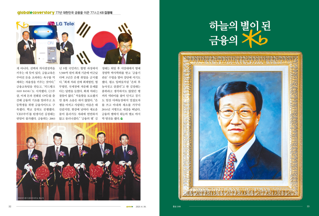 '금융의 별' 김정태는 퇴임 후 서강대에서 명예경영학 박사학위를 받고 '금융기관론' 수업을 맡아 강단에 서기도 했다. 평소 입버릇처럼 "은퇴 후 농사짓고 살겠다"고 한 김정태는 품위라고 생각하지도 않았던 뱅커의 넥타이를 풀어 던지고 경기도 일산 다와농장에서 밀짚모자를 쓰고 아내와 채소를 가꾸다 2014년 지병으로 세상을 떠나며 금융의 별에서 하늘의 별로 마지막 영전을 했다. <끝>
