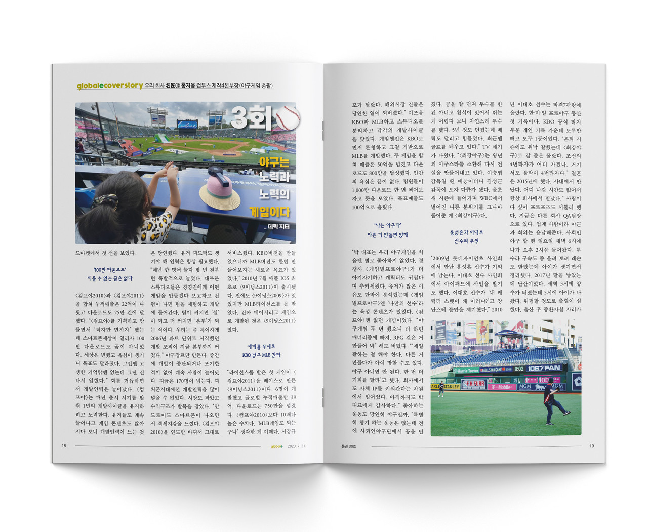 매출 목표가 1,500억 원인 야구단이 등장했다. 지난해 매출 1,300억 원을 돌파한 컴투스 야구게임단의 총사령관 홍지웅은 해외시장을 겨냥한 신무기 <MLB 9이닝스: 라이벌>도 실전 투입했다. 홍지웅은 수백만 구단주를 이끌고 있다. 꽃길만 걸었던 건 아니다. 처녀작 <컴프야2008>이 적자를 냈고 <컴프야2009>도 생각만큼 성과를 내지 못했다. '세계 여성경영인 50'에 이름을 올린 박지영 당시 컴투스 대표는 "야구는 게임빌이 잘하는 것 같다"며 "다른 장르를 뚫는 게 낫겠다" 했다. 홍지웅은 "아는 것도, 할 수 있는 것도 야구밖에 없다" 배수진을 쳤다. '구원투수'만 올리면 이길 수 있었다. 경영진을 설득하고 설득했다. "마지막이다." 홍지웅은 연봉을 내주고 시간을 벌었다. 그리고 9회말투아웃에서 끝내기홈런을 쳤다. <컴프야2010>과 존재감을 각인한 한방이었다. 홈런포는 계속됐다. 국내시장 평정 후 <MLB 9이닝스>를 들고 해외시장에 출사표도 던졌다. 명장이 가는 길에 수백만 구단주도 뒤를 따랐다.