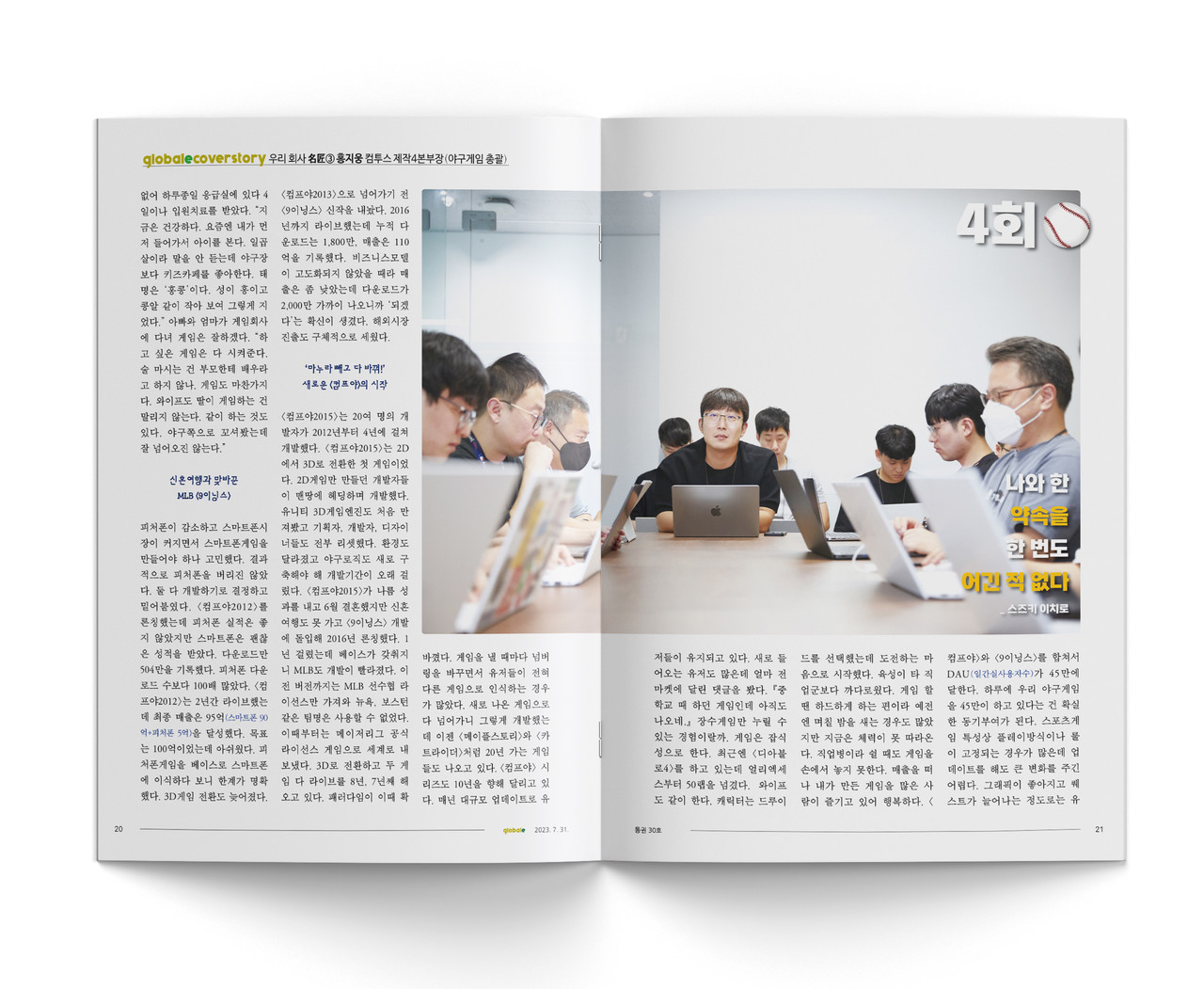 "매출을 떠나 내가 만든 게임을 많은 사람이 즐기고 있어 행복하다. <컴프야>와 <9이닝스>를 합쳐서 DAU(일간실사용자수)가 45만에 달한다. 하루에 우리 야구게임을 45만이 하고 있다는 건 확실한 동기부여가 된다."