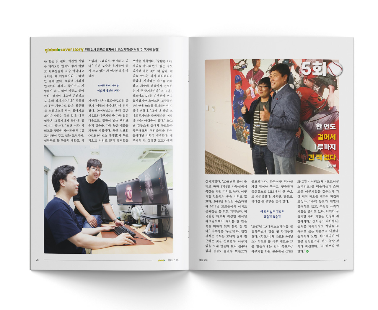"야구게임을 오래 만들다 보니 선수나 팀과 접점도 늘었다. 박찬호가 롤모델이다. 한국야구 역사상 가장 뛰어난 투수고, 꾸준함과 성실함으로 MLB에서 큰 축으로 자리잡았다. 가치관, 팀워크, 리더십 등 본받을 점이 많다. 2017년 LA다저스스타디움 클럽하우스에 갔을 땐 감개무량했다. <컴프야>와 <MLB 9이닝스> 시리즈 IP 이후 새로운 IP를 만들어내는 것이 목표다."