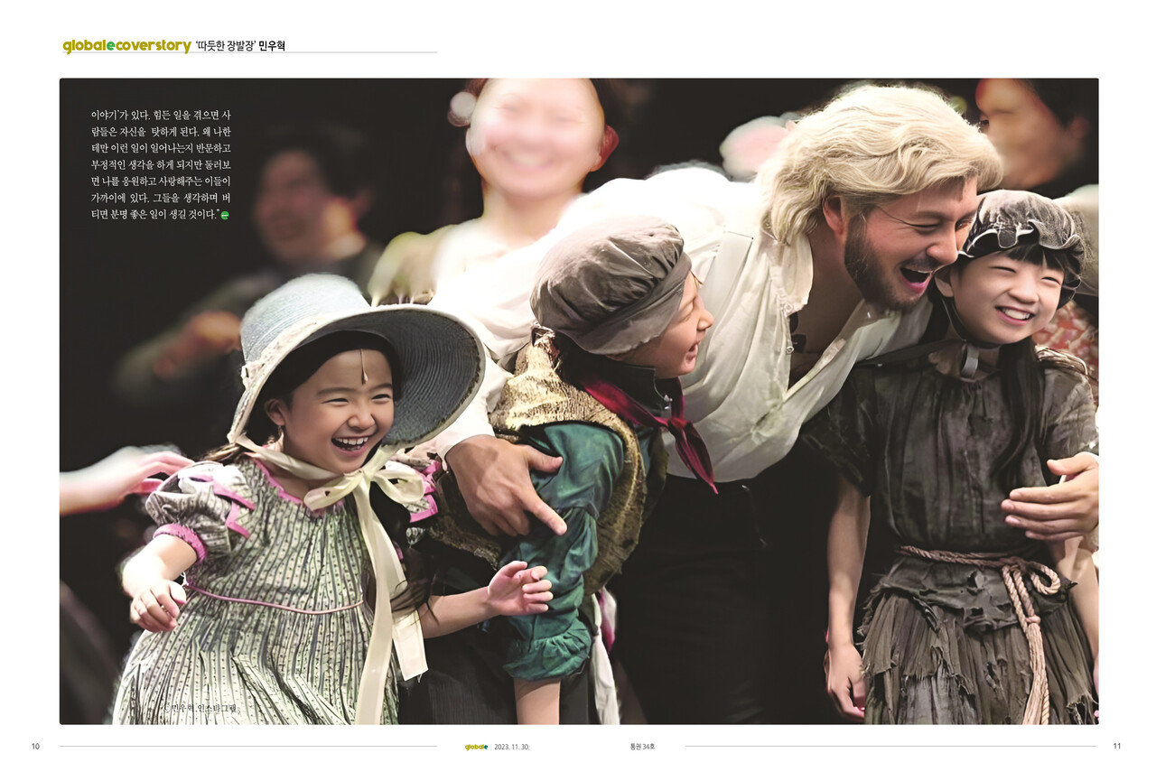 민우혁은 경제적으로나 심리적으로 위축된 지금, 장발장으로서 시민들에게 위로를 건넸다. "죽기 전 코제트에게 전하는 편지에 '나의 참회록이다. 널 사랑한 사람들의 이야기'가 있다. 힘든 일을 겪으면 사람들은 자신을 탓하게 된다. 왜 나한테만 이런 일이 일어나는지 반문하고 부정적인 생각을 하게 되지만 둘러보면 나를 응원하고 사랑해주는 이들이 가까이에 있다. 그들을 생각하며 버티면 분명 좋은 일이 생길 것이다." <계속>