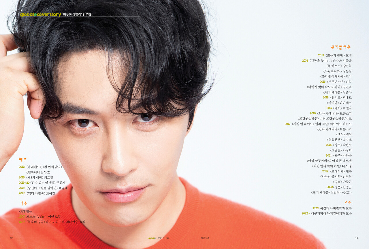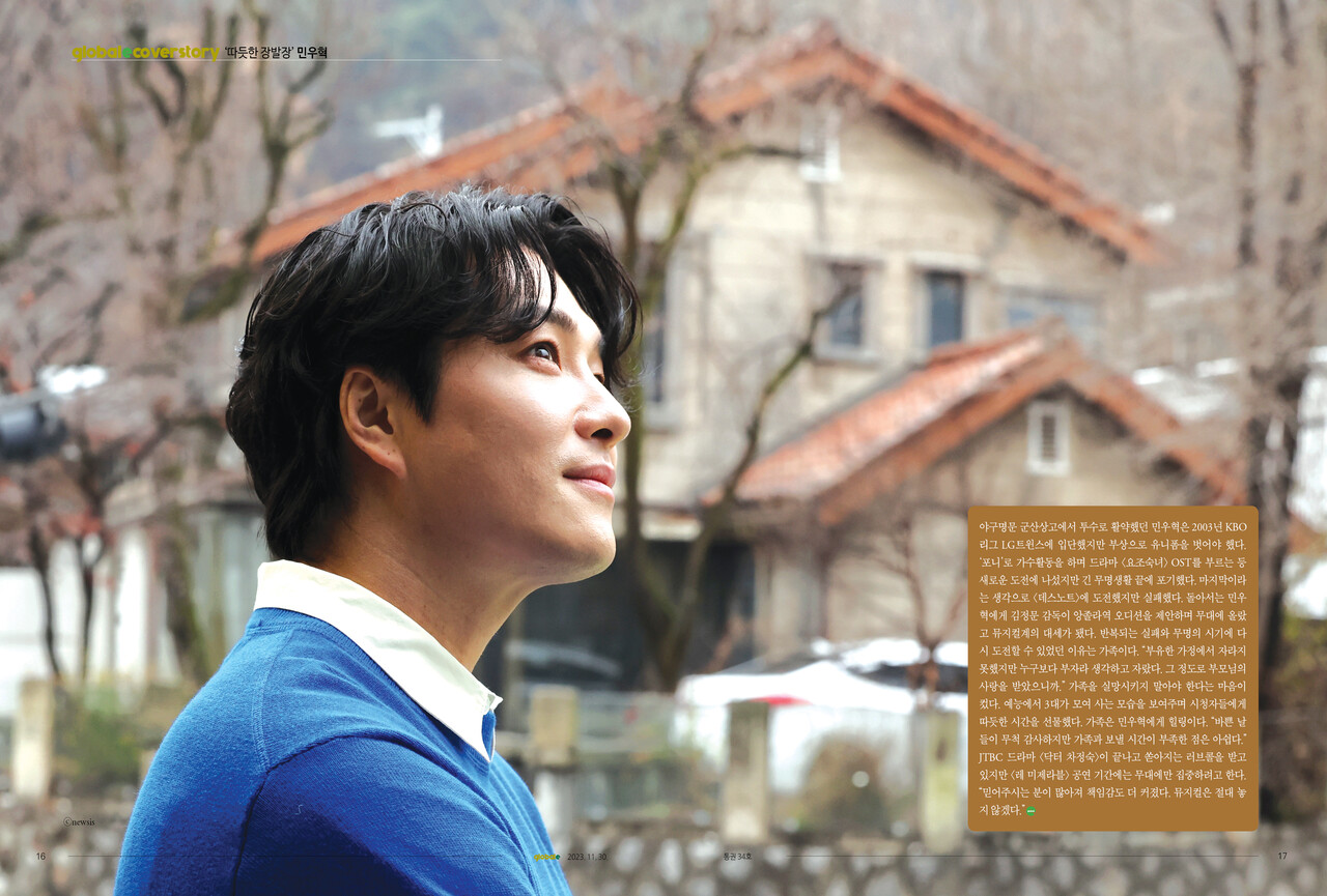 가족은 민우혁에게 힐링이다. "바쁜 날들이 무척 감사하지만 가족과 보낼 시간이 부족한 점은 아쉽다." JTBC 드라마 <닥터 차정숙>이 끝나고 쏟아지는 러브콜을 받고 있지만 <레 미제라블> 공연 기간에는 무대에만 집중하려고 한다. "믿어주시는 분이 많아져 책임감도 더 커졌다. 뮤지컬은 절대 놓지 않겠다." <끝>