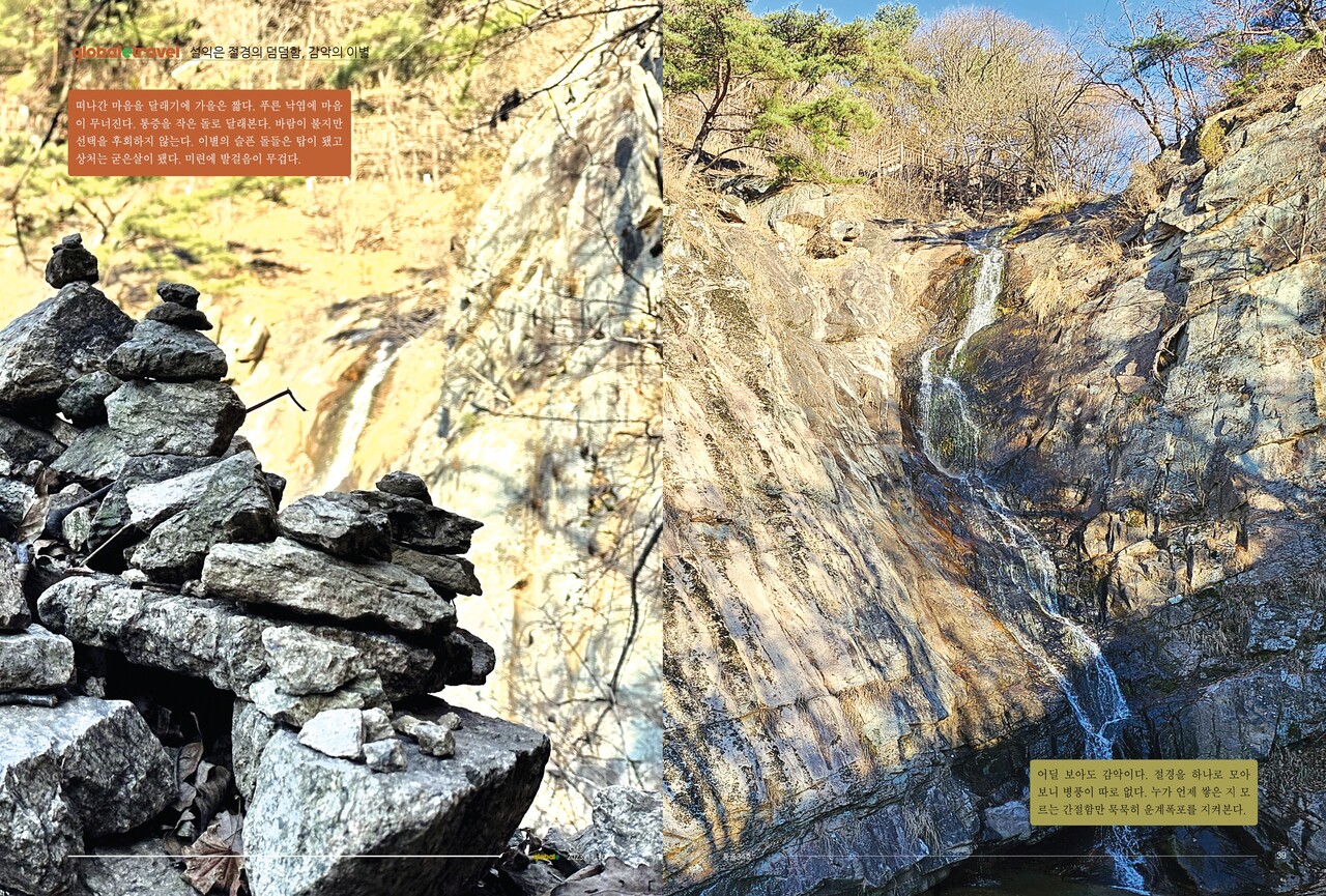 어딜 보아도 감악이다. 절경을 하나로 모아 보니 병풍이 따로 없다. 누가 언제 쌓은 지 모르는 간절함만 묵묵히 운계폭포를 지켜본다.