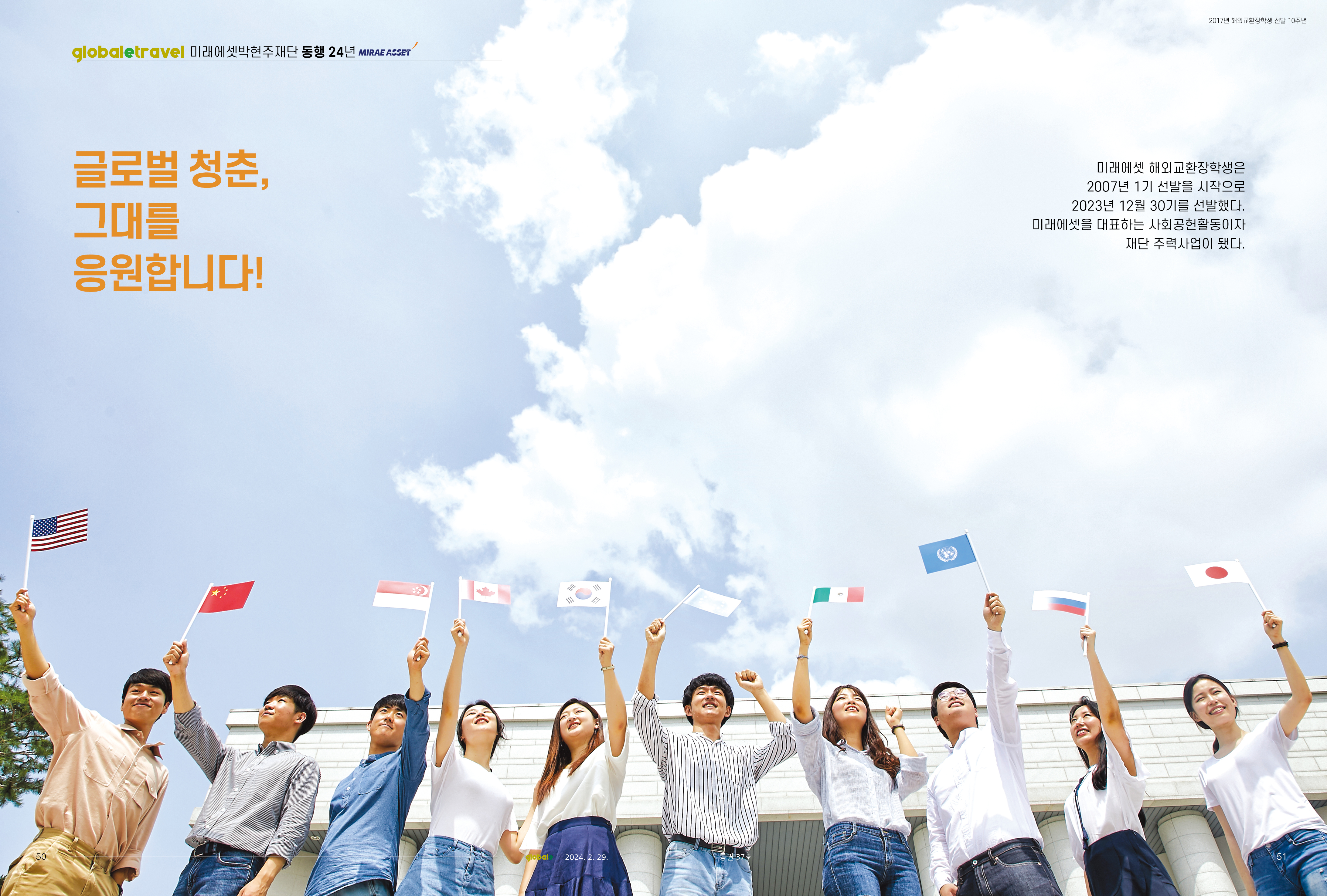 미래에셋 해외교환장학생은 2007년 1기 선발을 시작으로 2023년 12월 30기를 선발했다. 미래에셋을 대표하는 사회공헌활동이자 재단 주력사업이 됐다.