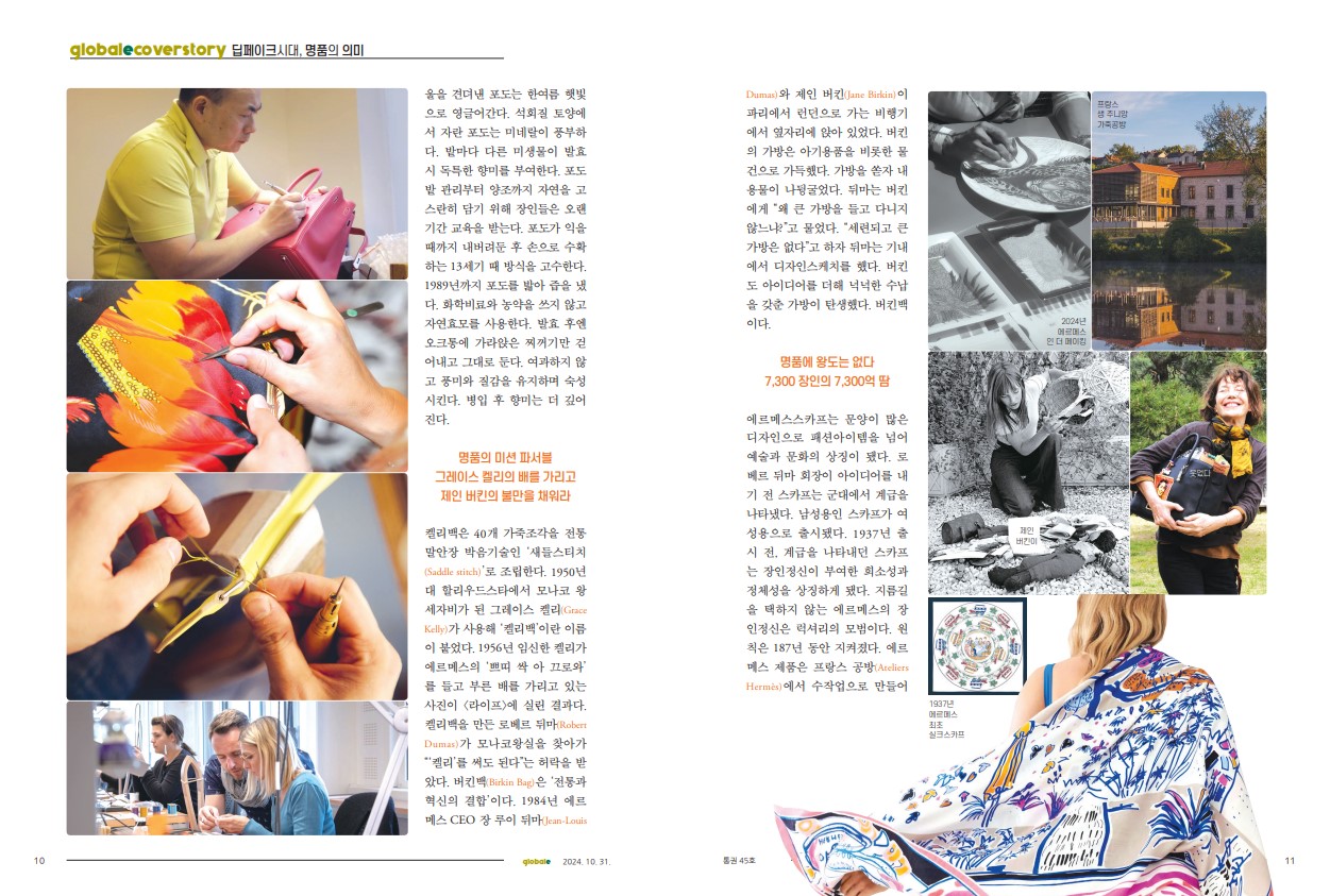 에르메스 장인은 7,300명이다. 에르메스 가죽공방엔 2,400명의 장인이 있다. 그들은 프랑스 11개 지역 50개 공방에서 일한다. 장인이 되기 전, 가죽학교에서 3년, 공방에서 2년 수련한다. 수련 중 만든 가방은 팔지 않는다. 노동법상 주간근로시간이 33시간이므로 한 명의 장인이 18시간 동안 제작하는 켈리백이나 22시간 동안 제작하는 버킨백은 1주에 두 개도 완성하지 못한다. 한정 수량을 수작업으로 생산해 소장가치가 높다. 《계속》