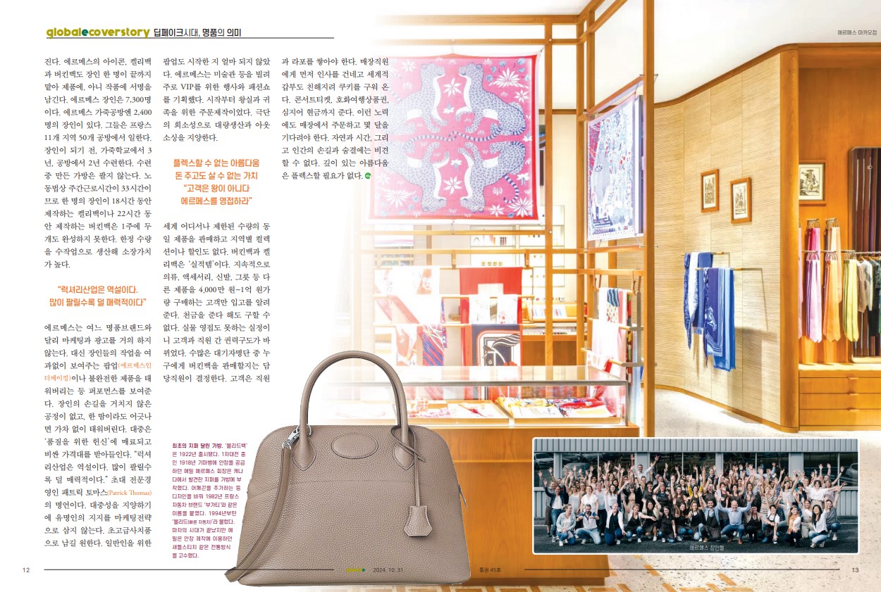 에르메스는 여느 명품브랜드와 달리 마케팅과 광고를 하지 않는다. 대신 장인들의 작업을 여과없이 보여주는 팝업(에르메스인더메이킹)이나 불완전한 제품을 태워버리는 등 퍼포먼스를 보여준다. 장인의 손길을 거치지 않은 공정이 없고, 한 땀이라도 어긋나면 가차 없이 태워버린다. 대중은 '품질을 위한 헌신'에 매료되고 비싼 가격대를 받아들인다.