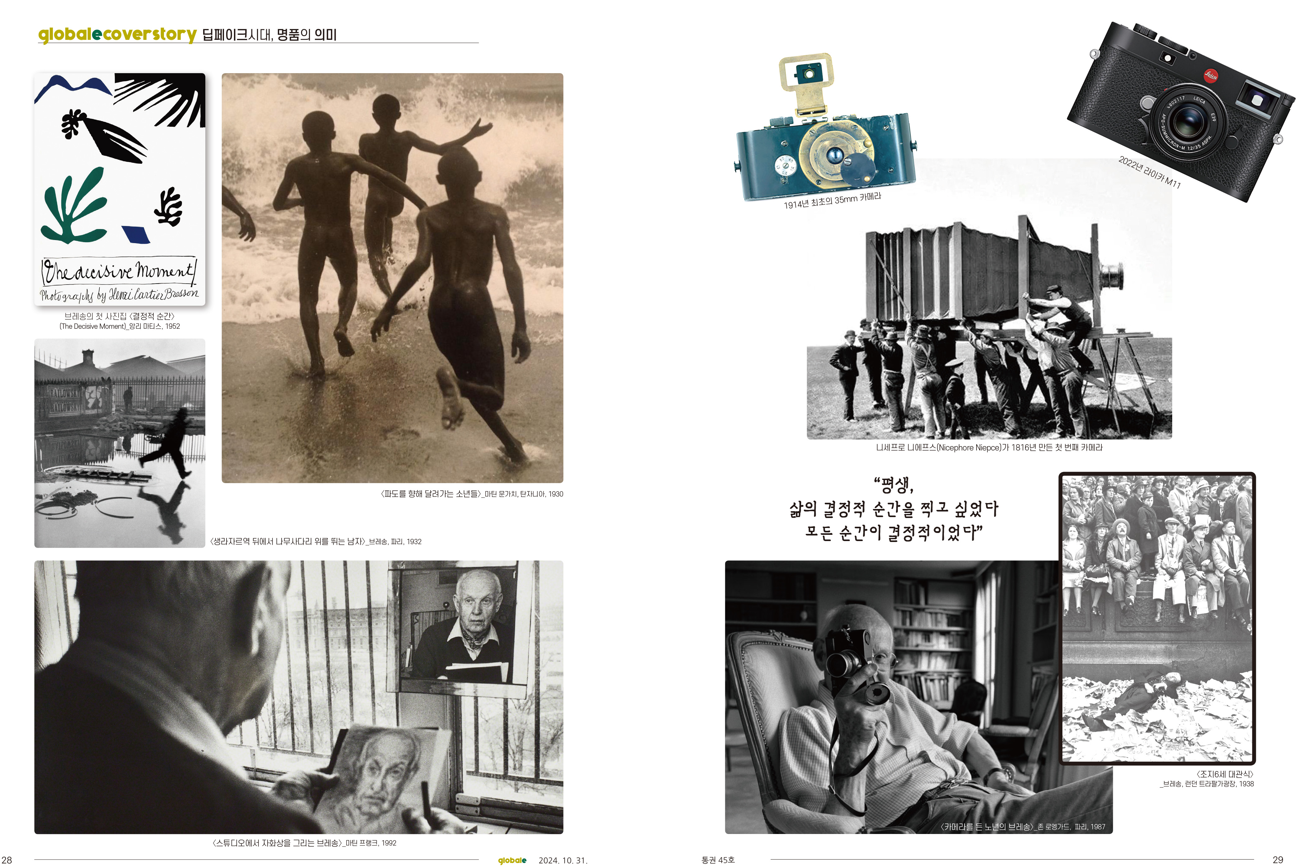 어렸을 때 회화를 배운 브레송은 사진을 인화하기 힘들 땐 드로잉으로 장면을 기록했다. 카메라를 눈의 연장선으로 생각했다. 전쟁이든 일상이든 삶의 모든 순간을 결정적으로 임했다. 가톨릭집안에서 태어났지만 불교에도 입문한 브레송은 사진철학과 동료 사진가들의 모습을 담은 〈마음의 눈(The Mind’s Eye)〉에서 불교를 이렇게 정의했다. "종교나 철학이 아니다. 정신을 다스려 얻은 평정심을 자비롭게 전파하는 수단이다."
