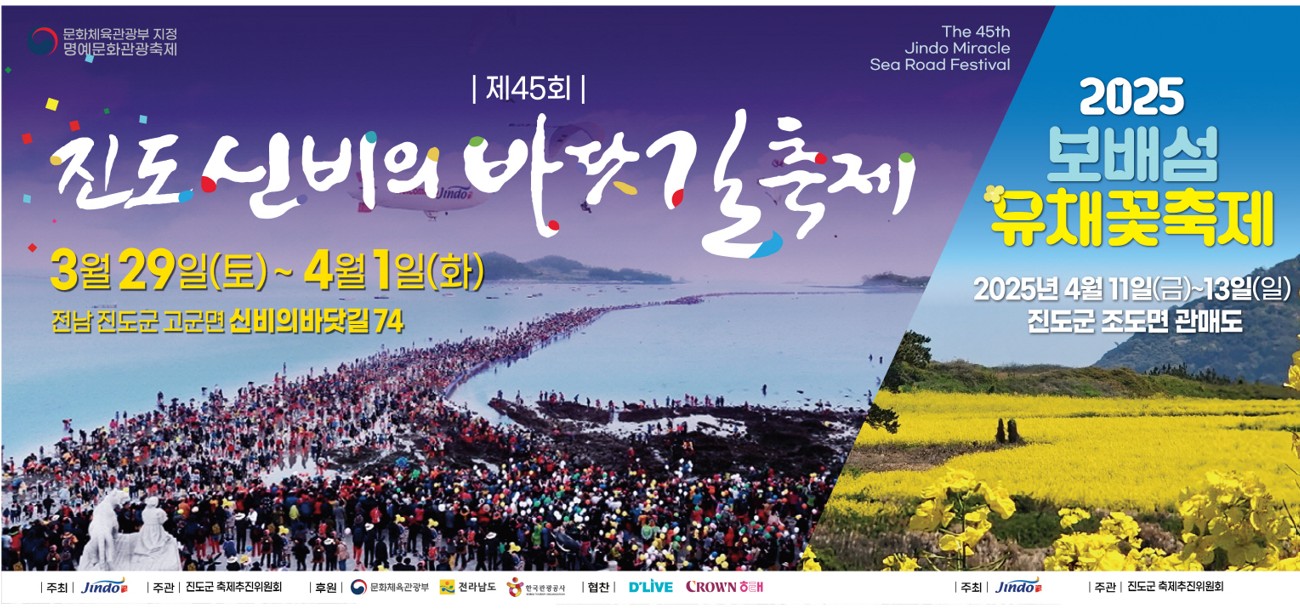 '2025 신비의 바닷길 축제'가 전남 진도군 고군면 일원에서 29일부터 나흘간 열린다.