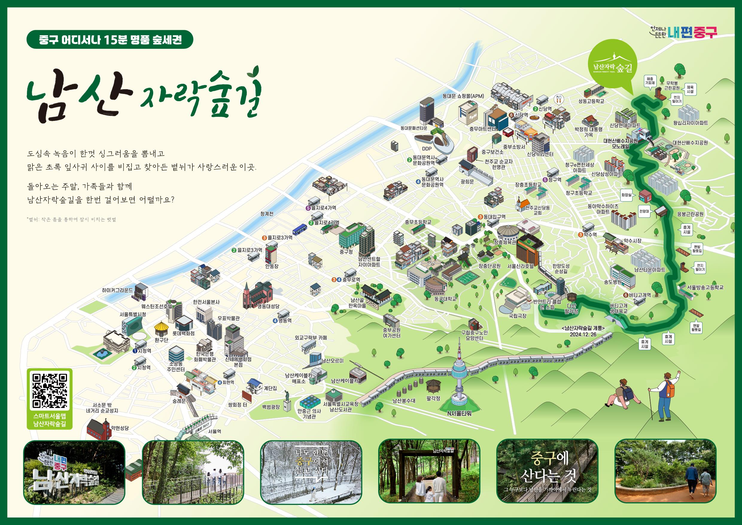 서울 중구가 '남산자락숲길'을 누구나 쉽게 찾고 즐길 수 있도록 중구 전역의 51개 코스를 담은 안내지도 '남산이음'을 제작했다.