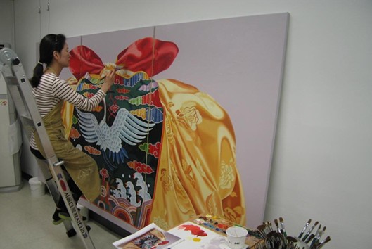 '보자기'라는 한국적 이미지 안에 세계와 소통하려는 열망을 '감싸는' 김 작가는 오늘도 관객과 '매듭을 매듯' 소통한다.