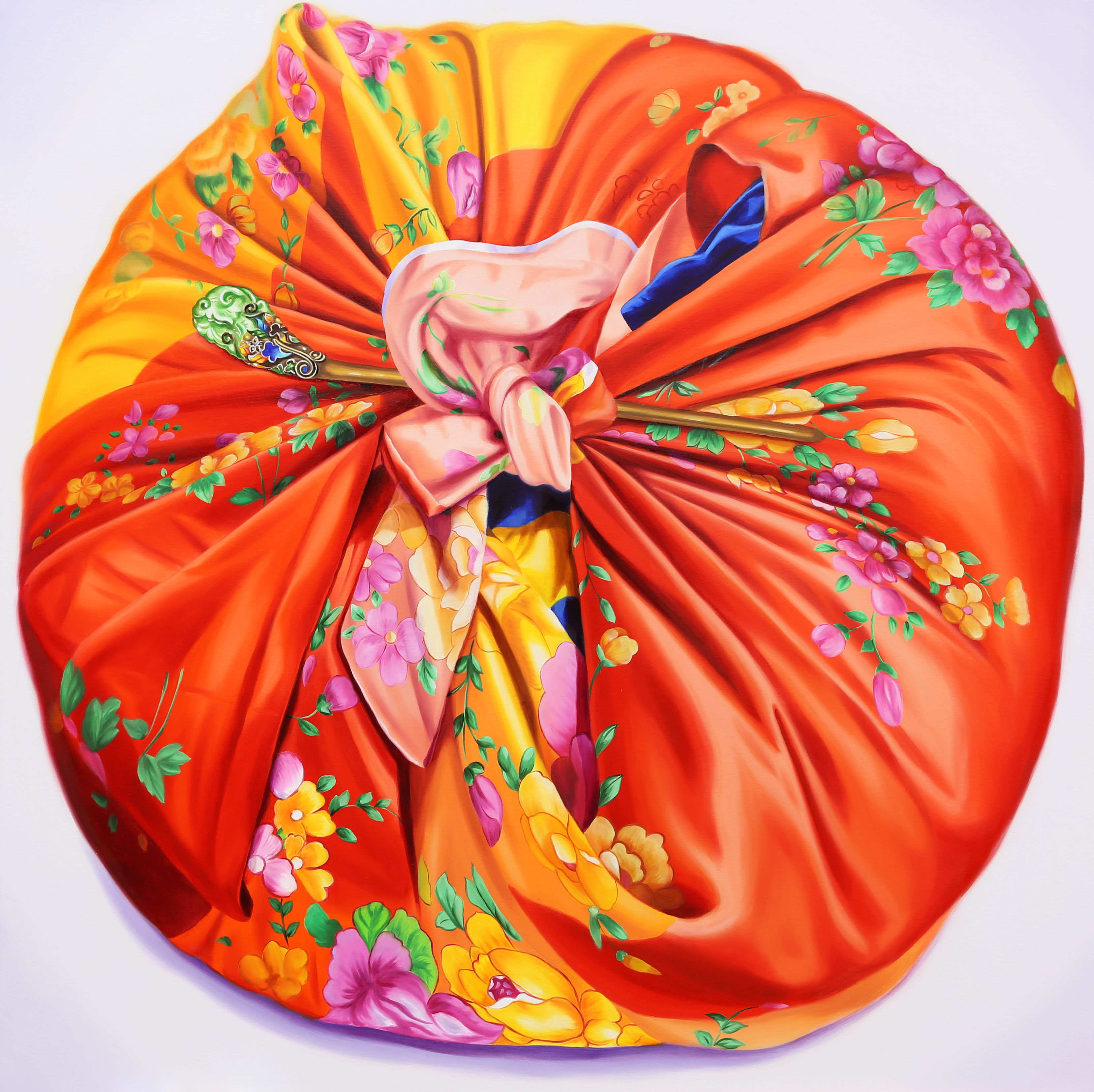 "가방은 형태가 고정돼 있지만 보자기는 싸는 물건에 따라 모양이 달라지죠. 없으면 평면이 되기도 해요. 감싸고 덮고 매는 이 소재는 여성성과 모성애의 상징입니다."
