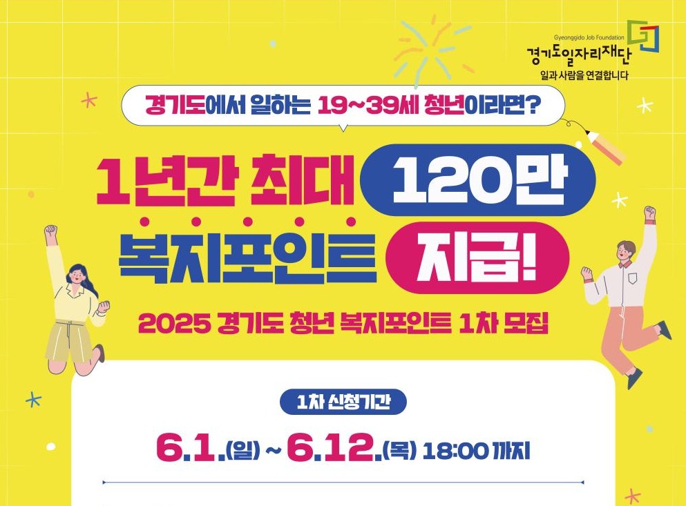 경기도는 도내 중소기업에서 일정 기간 이상 근무한 청년을 대상으로 '2025년 청년복지포인트' 지원사업을 진행한다. 두 차례에 걸쳐 1만 명씩 모집할 계획이다. 1차는 6월 1일부터 12일까지며 2차는 8월 중 진행할 예정이다.