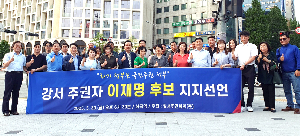 서울 강서구를 중심으로 전국적인 '주권강화활동기구' 결성을 추진 중인 '강서주권회의(준)'가 5월 30일 오후 6시 30분경 화곡역사거리에서 "이재명 더불어민주당 후보 지지"를 선언했다.