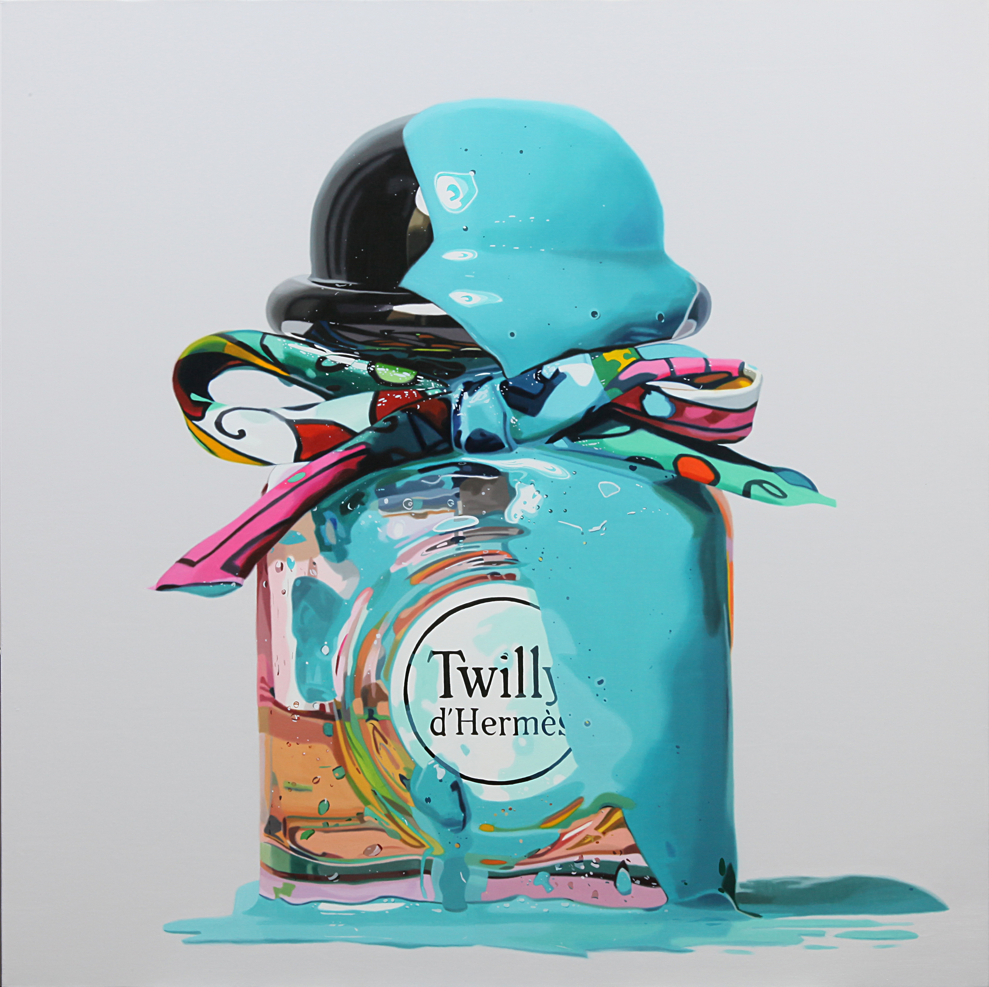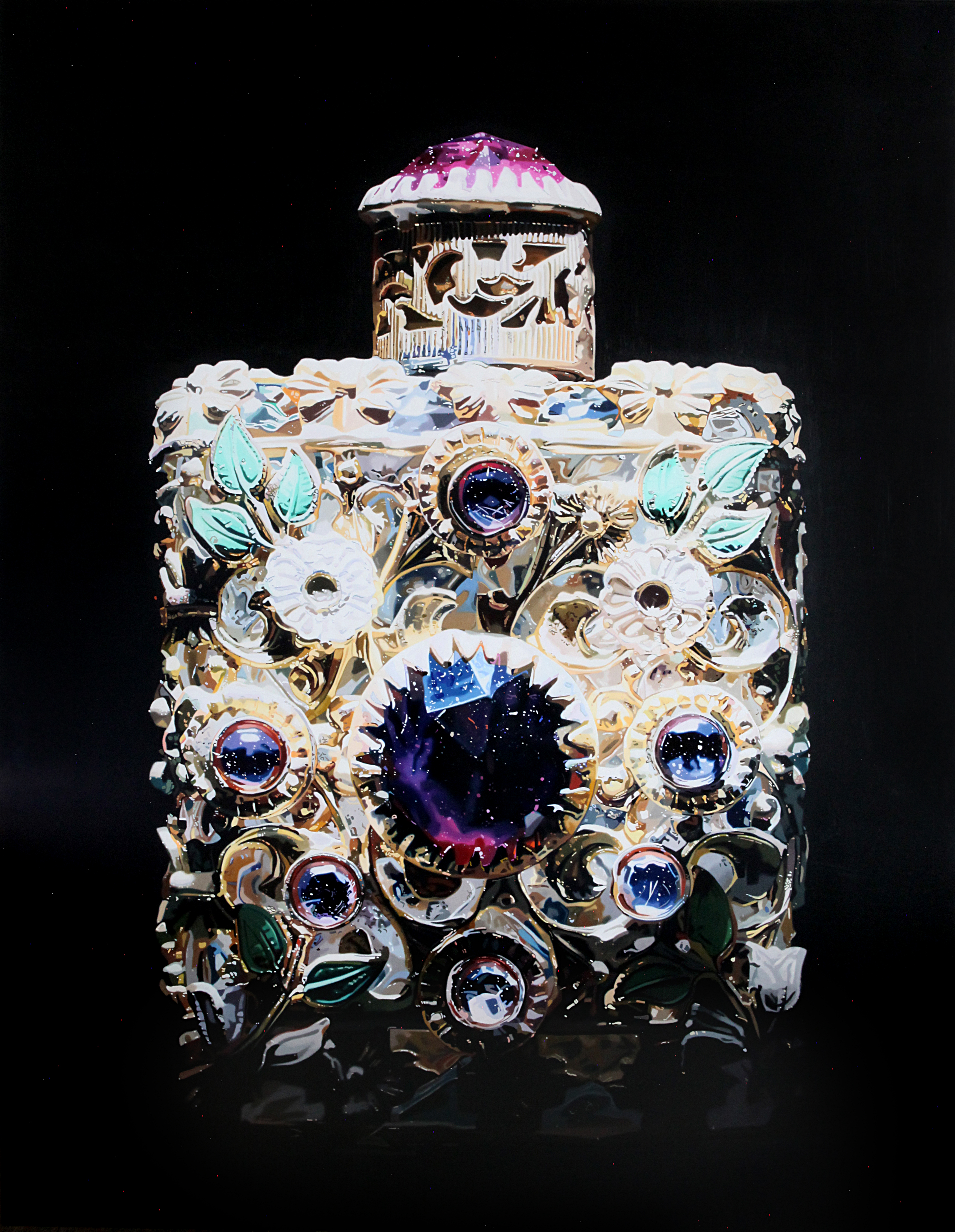 향수병을 많이 그렸지만 본질은 유리다. 투명하지만 모든 걸 왜곡한다. 최근에는 유리병에 병뚜껑을 담았다.