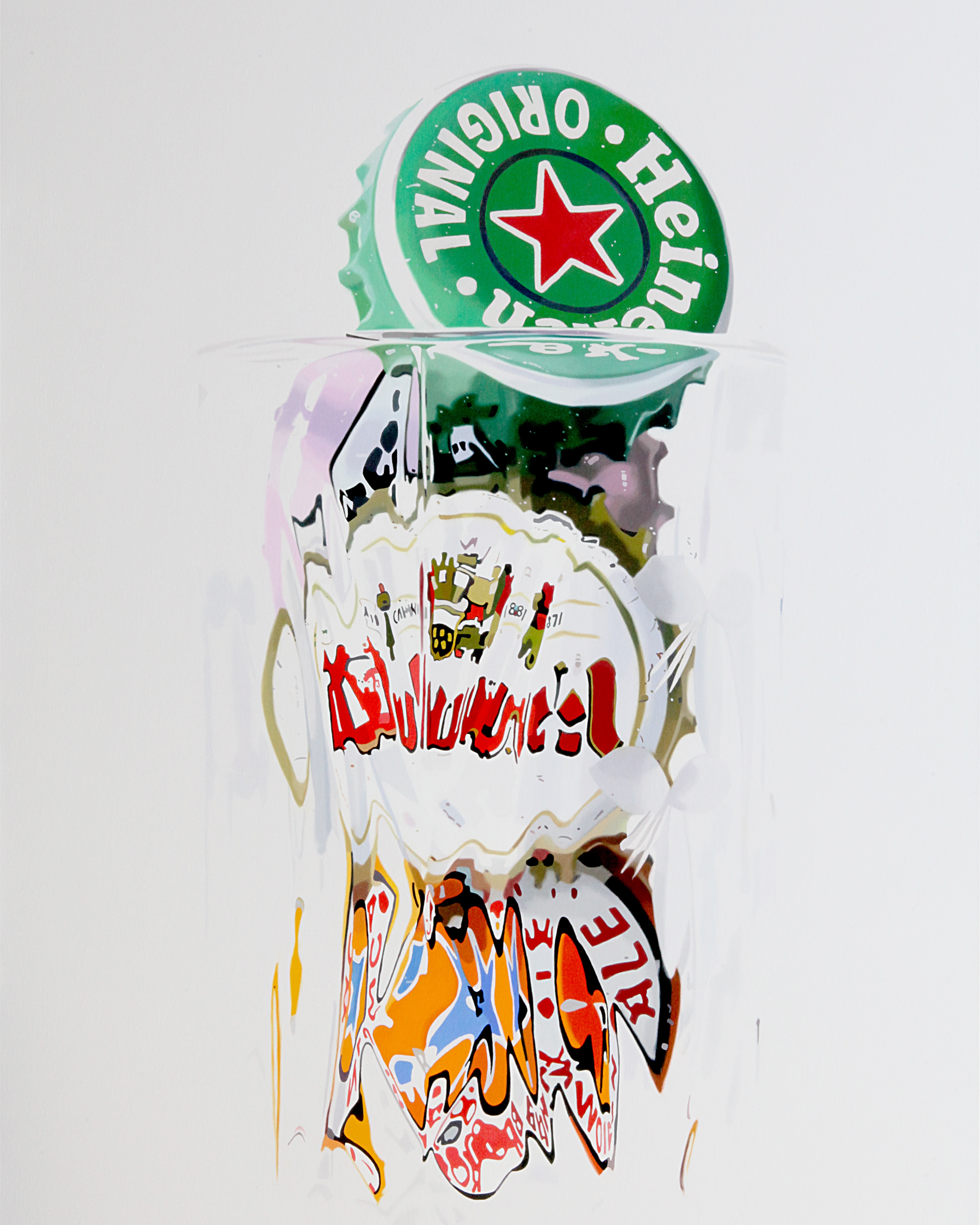 병뚜껑을 그린건 세상에서 느껴지는 감정의 은유다. 왜곡과 굴절이 투명한 유리 속에서 뒤틀리고 빛난다.