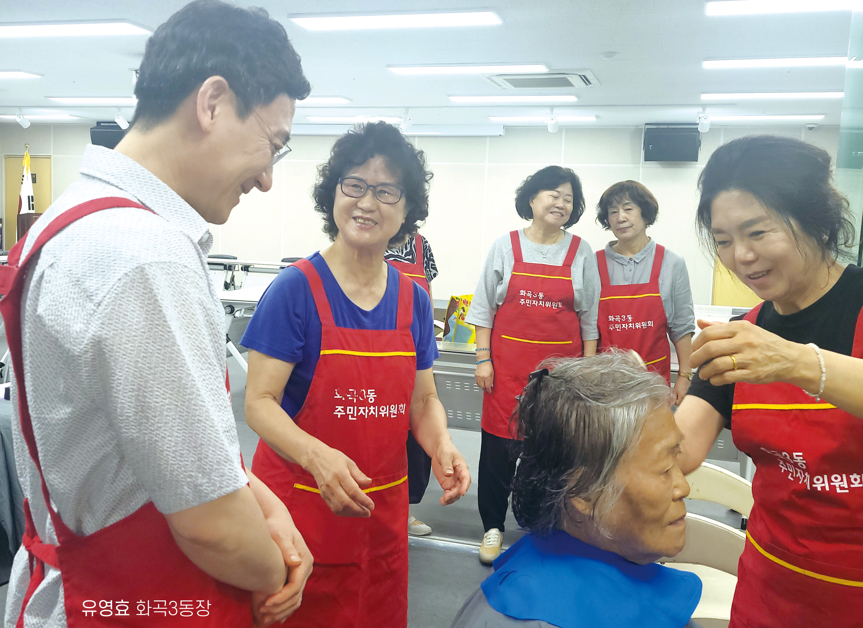 "노인을 위한 나라는 없다"(코맥 매카시 소설)고 하지만 화곡3동엔 어르신을 위하는 천사들이 산다. 허 원장은 초파일(음력 4월 8일)이 생일이니 부처님이 달마다 내려와 어르신들의 머리를 만져주는 것일까.